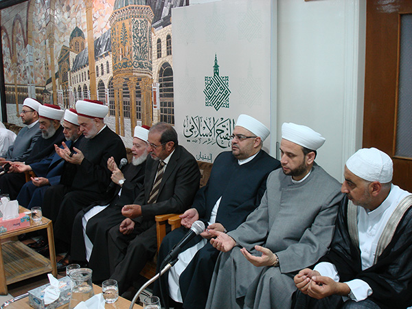 بمناسبة حلول عيد الفطر المبارك التقى المدرسون والطلاب في معهد الفتح الإسلامي صباح يوم العيد بحضور كل من فضيلة الشيخ د .حسام الدين فرفور المشرف العام على مجمع الفتح الإسلامي وفضيلة الشيخ د. عبد الفتاح البزم مدير معهد الفتح الإسلامي ـ مفتي دمشق ـ وفضيلة الشيخ د. ولي الدين فرفور وفضيلة الشيخ حسين صعبية مدير دار الحديث بدمشق .