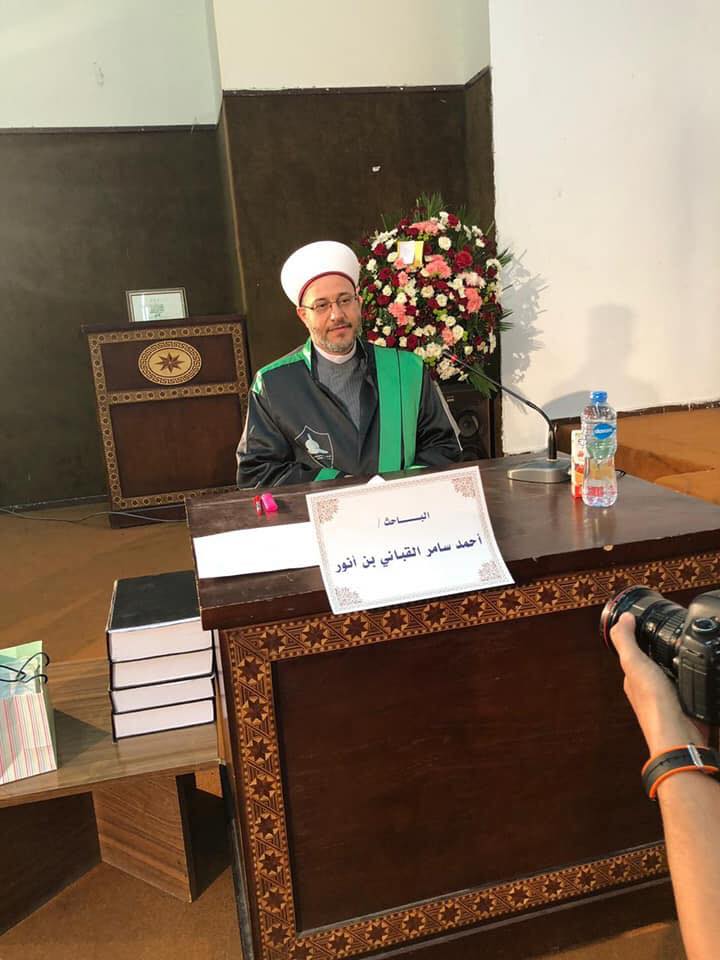 درجة الدكتوراه مع مرتبة الشرف الأولى للباحث الشيخ أحمد سامر القباني