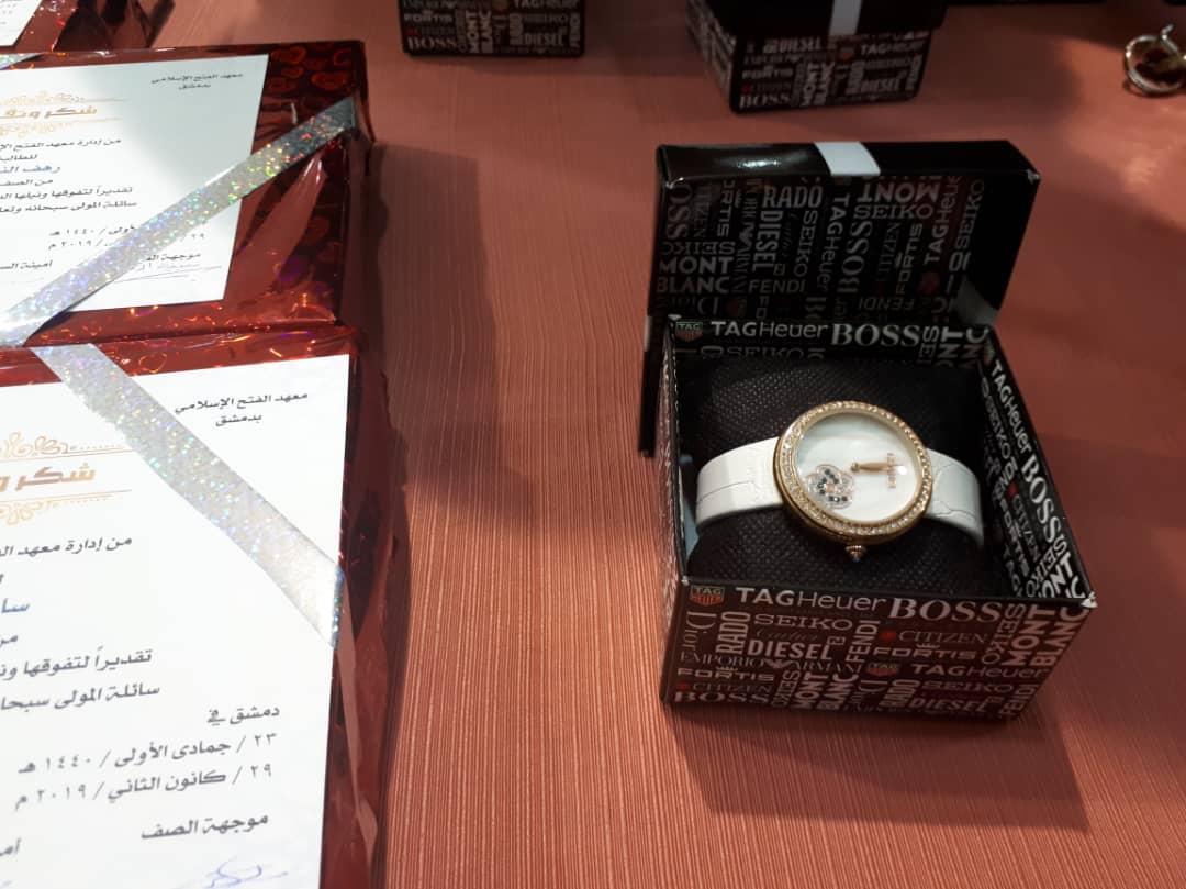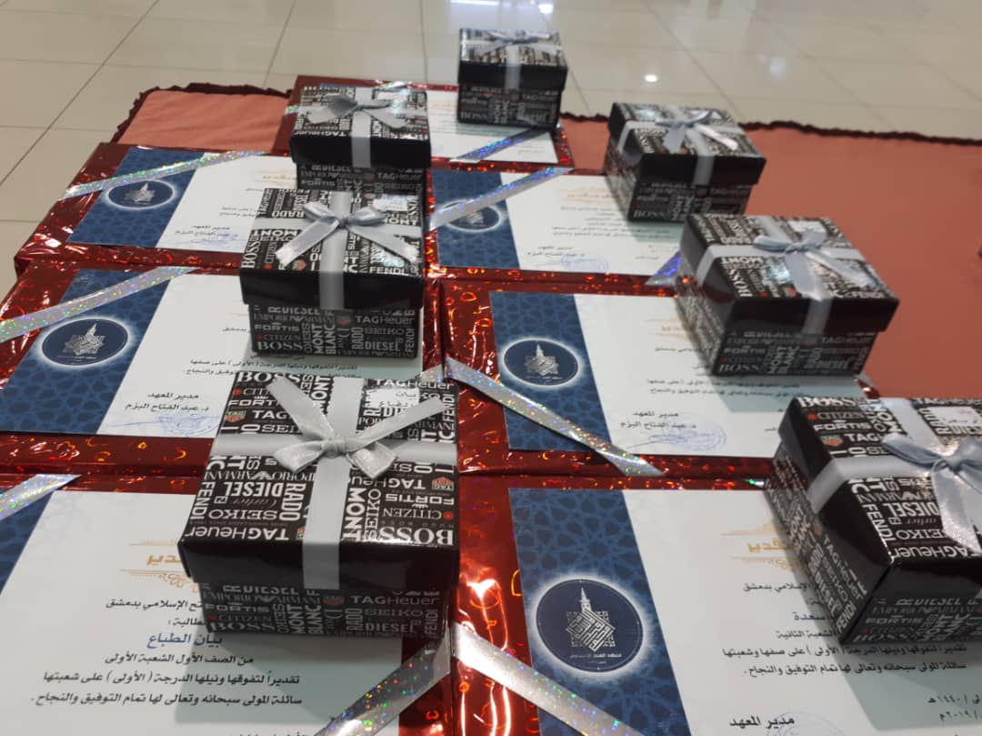 أقامت إدارة معهد الفتح الإسلامي / قسم الإناث حفل تكريم للطالبات الأوائل في الفصل الأول ، بحضور المدرسات والإداريات ، تم من خلاله توزيع جوائز على الطالبات الأوائل ( كتاب شرح جوهرة التوحيد للصاوي ، وكتاب شرح الحكم العطائية للشرنوبي ) والجدير بالذكر أن الكتابين من مقررات المعهد في الصفوف العليا ، وحققهما فضيلة د. الشيخ عبد الفتاح البزم .